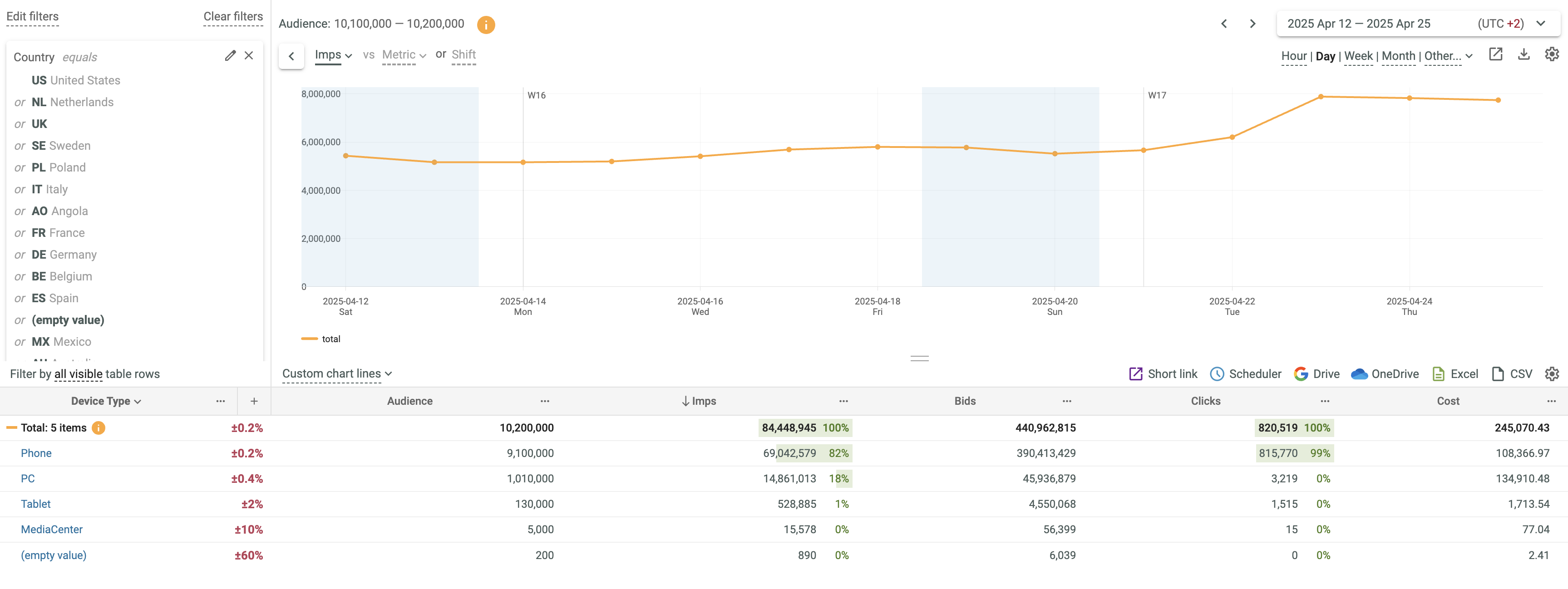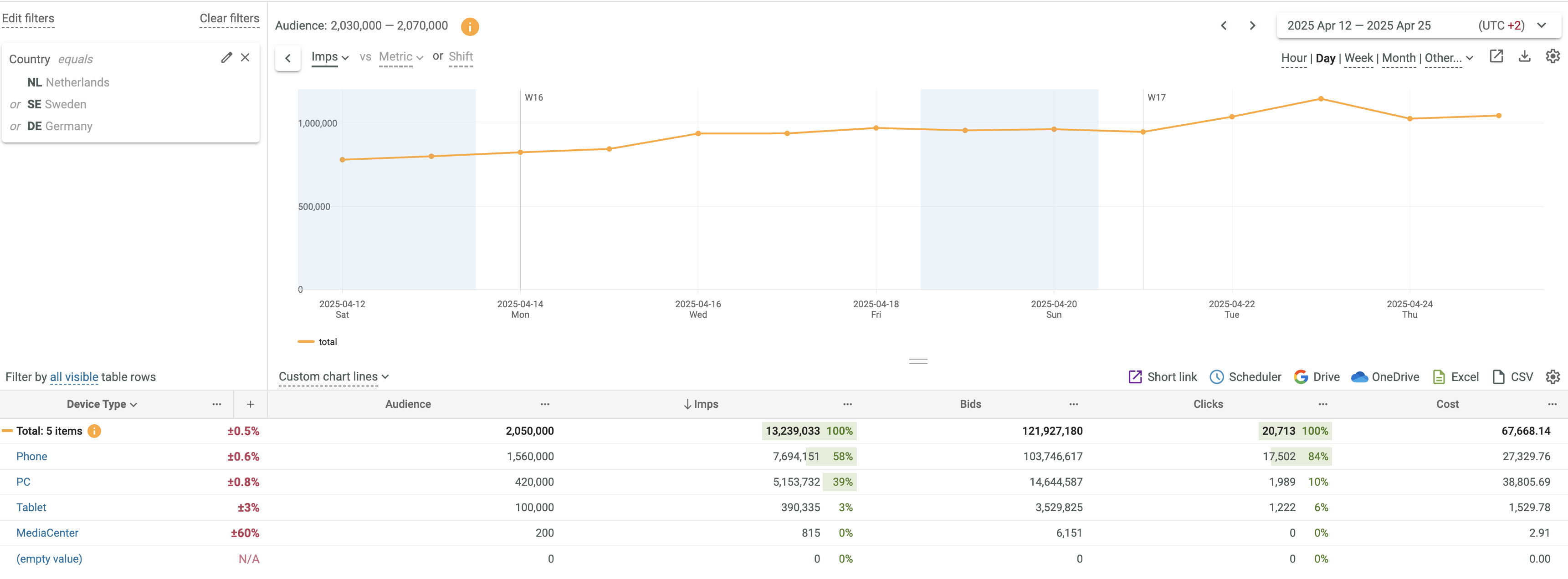 - See that the advanced filter is applied to the NL, DE and SE key field values.